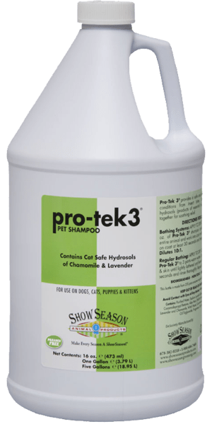 Pro-Tek 3 ® provides a safe and effective answer to itching and trauma due to skin irritations from insect bites. Coconut conditioners restore coat balance while adding body, luster and groom-ability. Safe, water-based hydrosols (products of essential oil distillation) meld together to produce great results. Dilutes 10:1.