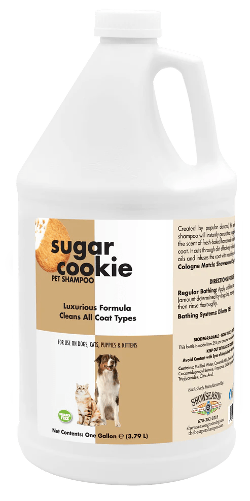 Gentle, conditioning shampoo that smells delicious! Cuts through dirt without stripping natural oils while infusing coat with aloe and sunflower oil. Dilutes 16:1. Cologne Match: Showseason ® Sugar Cookie.