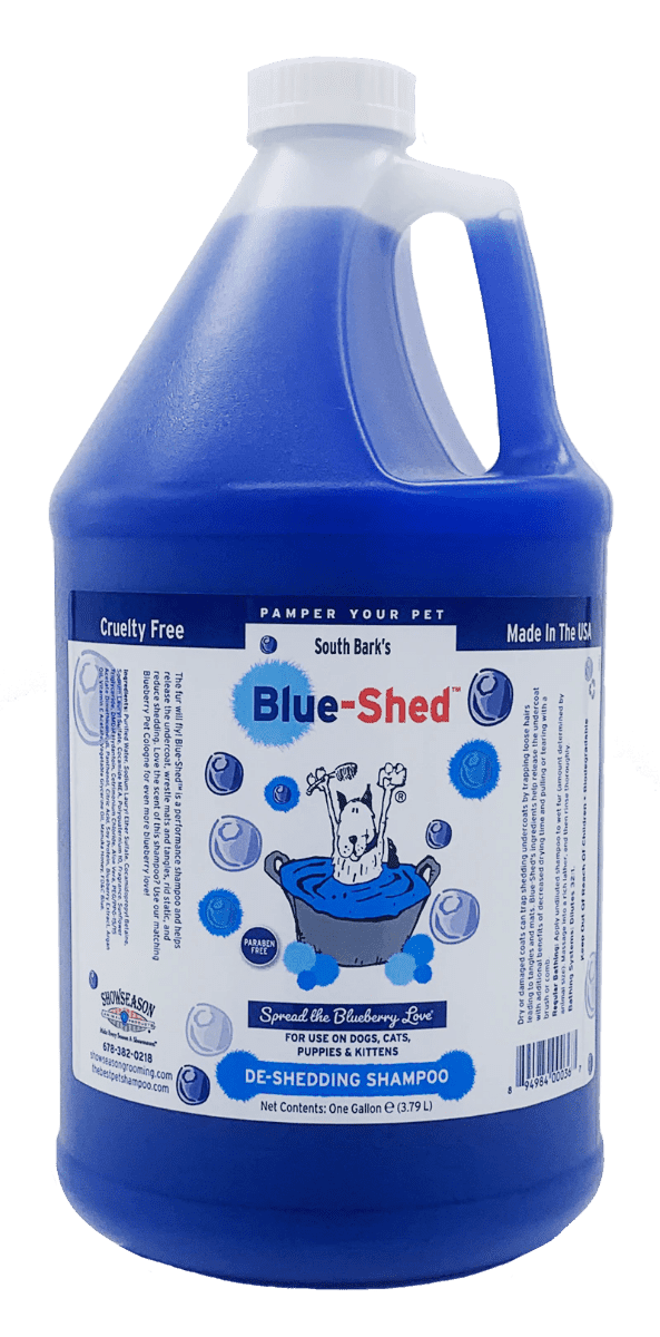 Get into the Blue and make the fur FLY! Blue-Shed „¢ is a performance shampoo that helps release the undercoat, wrestle mats and tangles, rid static, and reduce shedding, all while brightening the coat! With moisturizing Manuka Honey, anti-oxidant rich Blueberry Extract, and strengthening Argan Oil, this shampoo will make the coat feel silky and gorgeously soft after de-shedding.