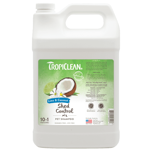 TropiClean Lime amp; Coconut Pet Shampoo with Omega 3 amp; 6 nourishes their skin to effectively reduce shedding and provide a deep refreshing clean. Pomegranate and awapuhi help remove excess hair and eliminate tangles, while oatmeal and coconut keep her skin and coat healthy and happy.