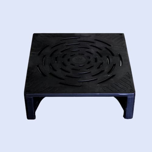 Measures 23 1/4 X 23 1/2 7" HIGH. Use to prop up small dogs and save your back. Made from lightweight ABS plastic for easy cleaning.